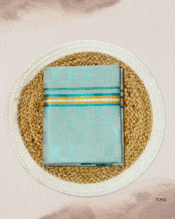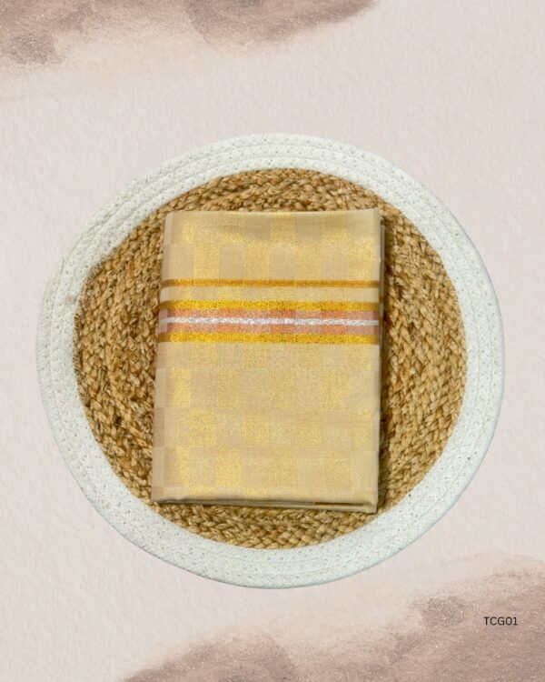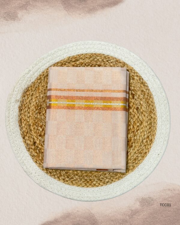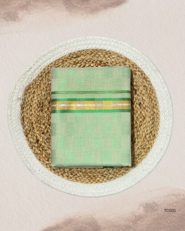 Tissue Checked dhotis offer a perfect fusion of subtle shine and classic checkered patterns, making them a standout choice for traditional occasions. Crafted from lightweight tissue fabric, they provide a graceful drape with a soft and breathable feel. The checked design adds a modern edge while preserving cultural charm. Ideal for ceremonies, temple visits, or festive gatherings, these dhotis combine elegance and ease of wear. Step into tradition with a contemporary twist through our beautifully designed Tissue Checked collection.